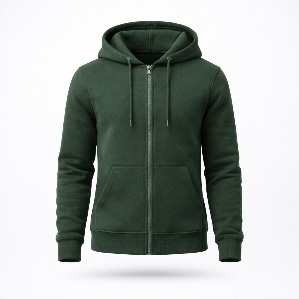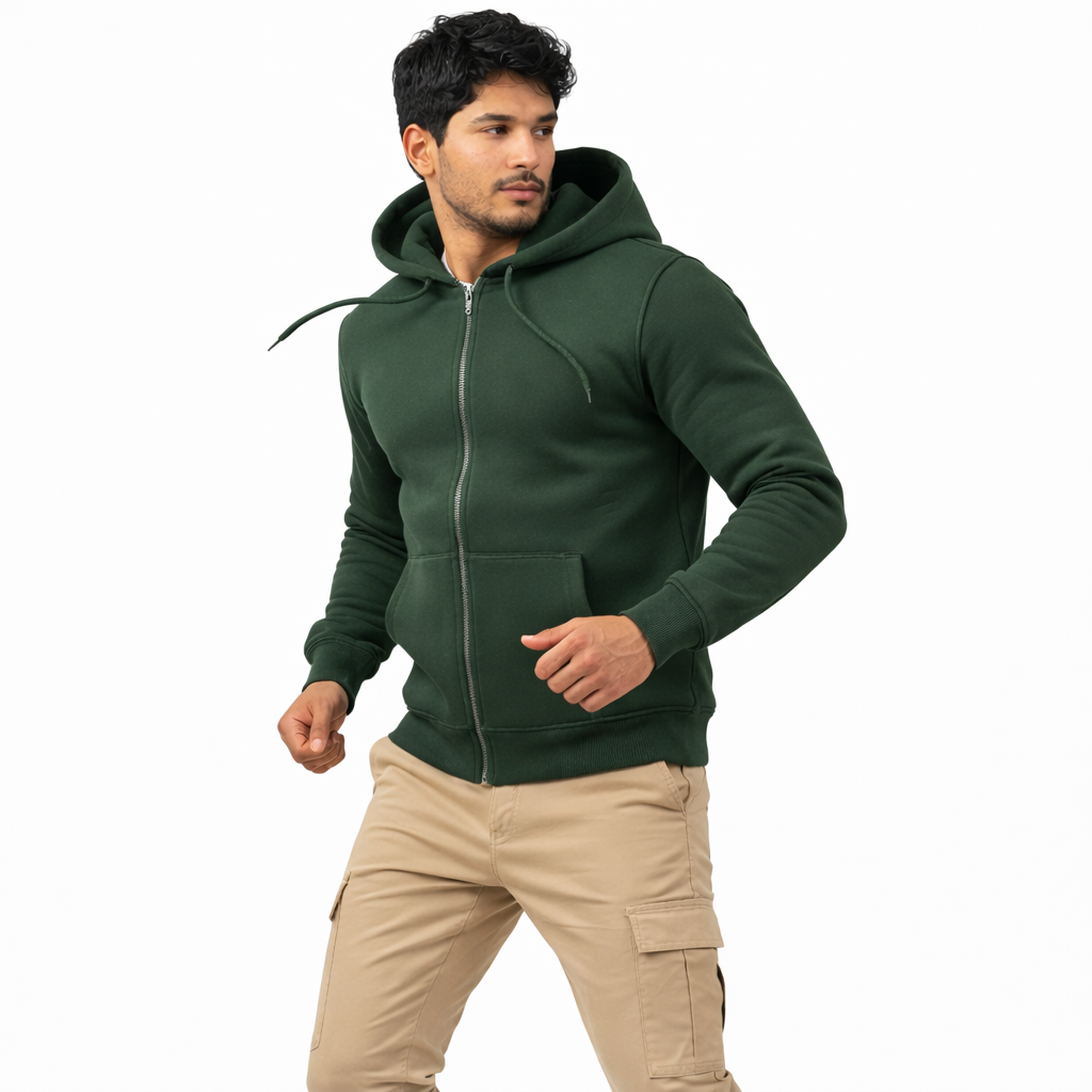Upgrade your everyday style with this premium dark green zip-up hoodie designed for comfort, warmth, and modern fashion. Crafted from high-quality cotton blend fabric, this hoodie provides superior softness, durability, and breathability. The full front zipper allows easy wear, while the adjustable hood and front pockets offer convenience and functionality. Perfect for daily wear, travel, gym sessions, and winter layering.